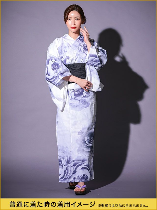 花魁 白地×淡彩牡丹 2way おいらん浴衣5点セットのイメージ画像1
