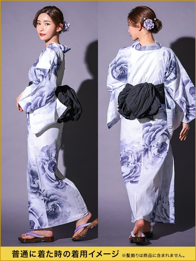 花魁 白地×淡彩牡丹 2way おいらん浴衣5点セットのイメージ画像3