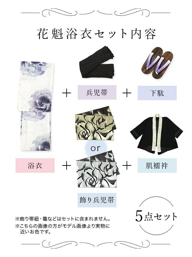 花魁 白地×淡彩牡丹2way おいらん浴衣5点セットのセット内容