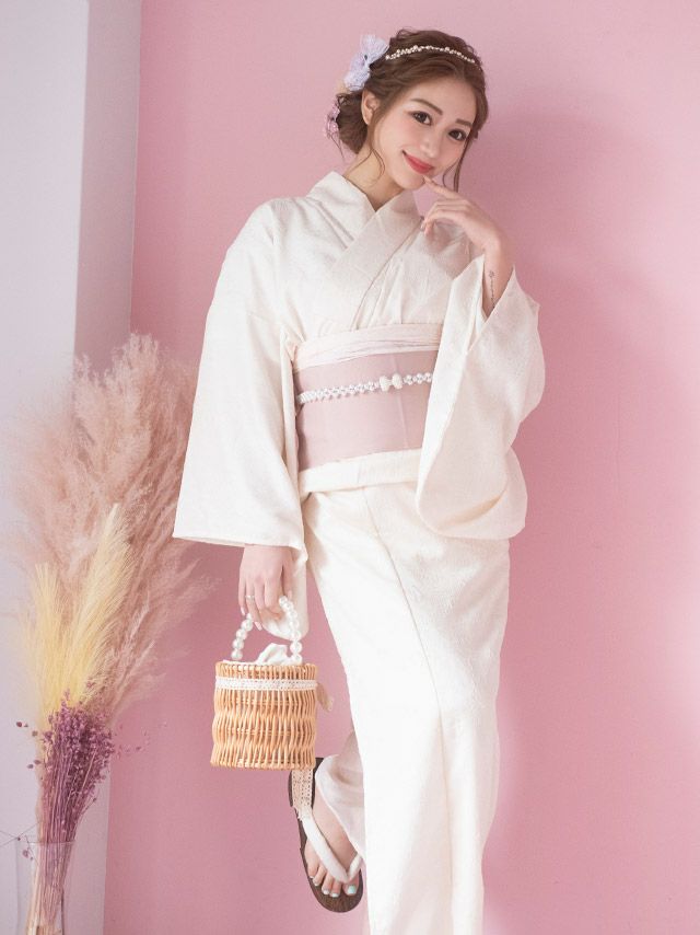 アイボリー/なぎ着用 スウィート シフォンフラワーレースのアイボリーゆかた3点セット内容 スモーキーピンク/PyunA.着用 スウィート シフォンフラワーレースのスモーキーピンクゆかた3点セット内容