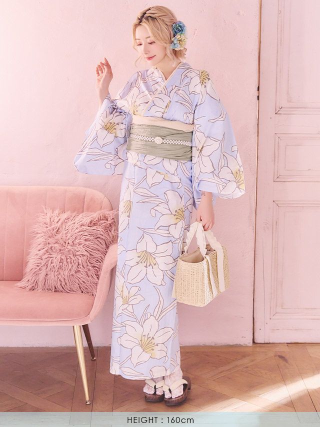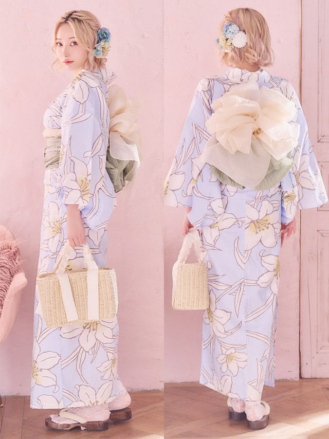 スウィート パステルブルー×線画白百合 ゆかた2点セット内容