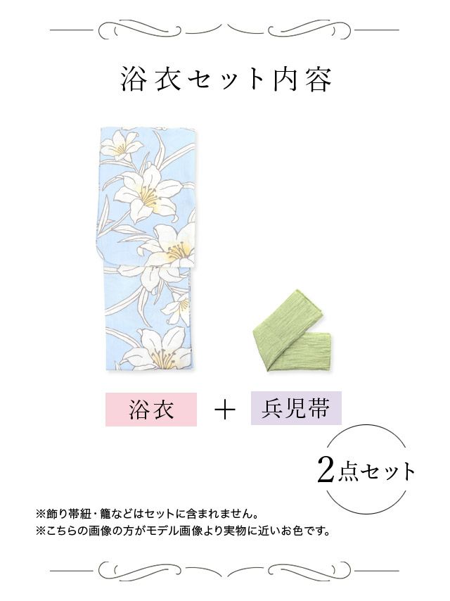 スウィート パステルブルー×線画白百合 ゆかた2点セットのセット内容