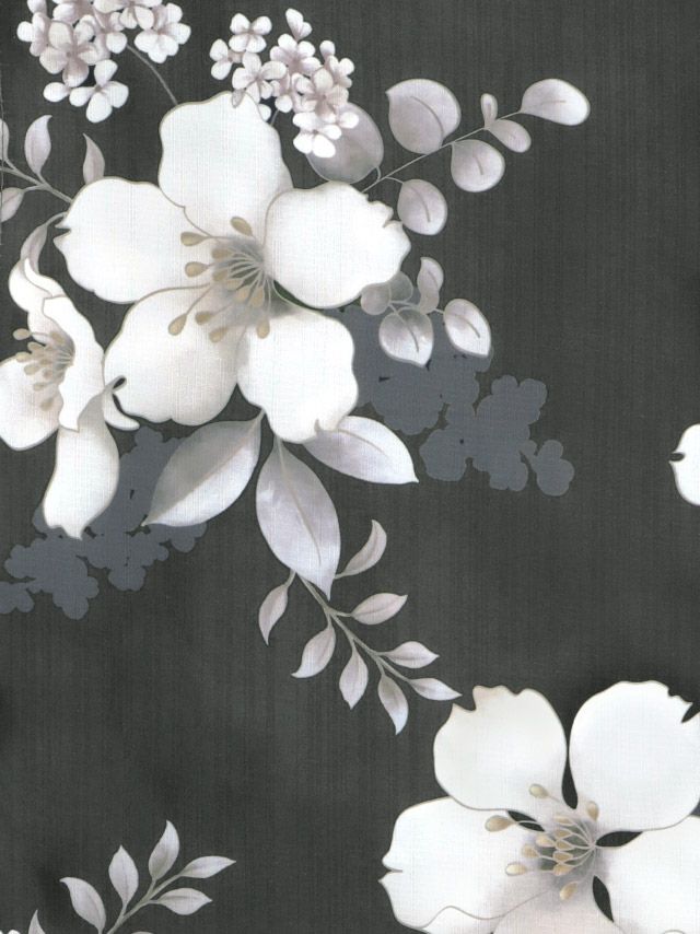 黒地×華やかニュアンス桜 ゆかた3点セットの柄アップ画像