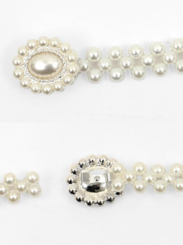 5. [浴衣小物] フラワーモチーフパール飾り帯紐 (ホワイト)