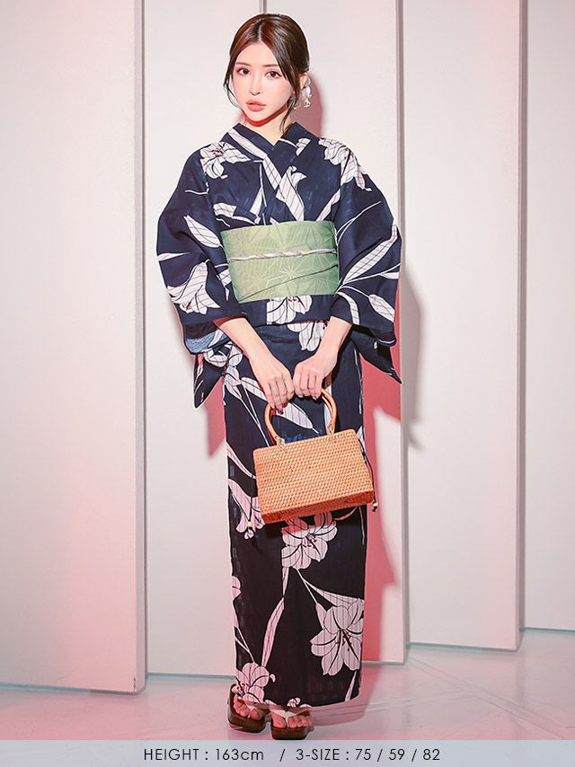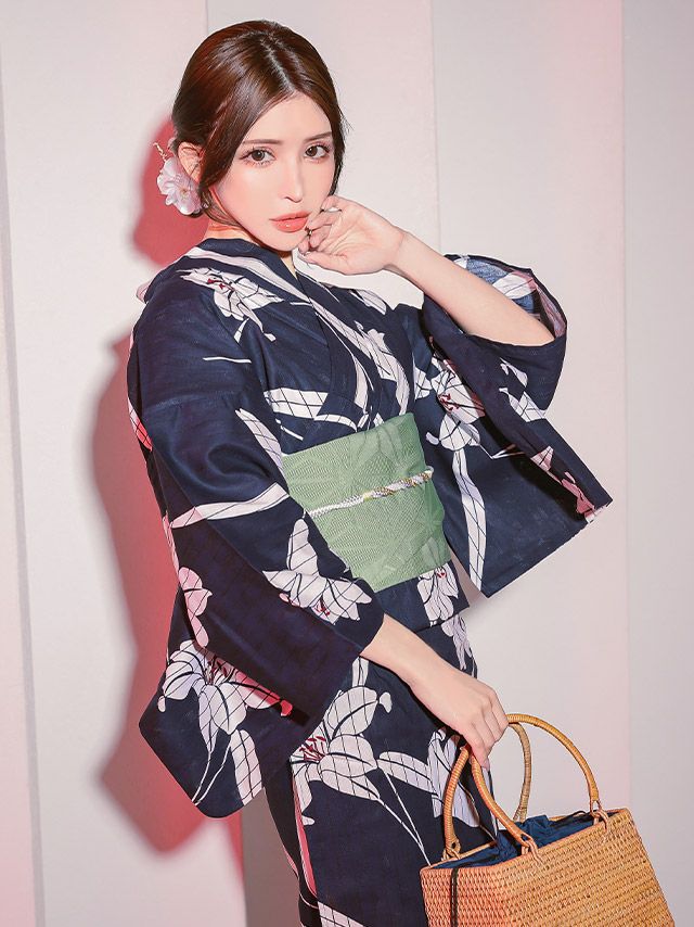 妖艶 紺地×白百合 ゆかた3点セット内容
