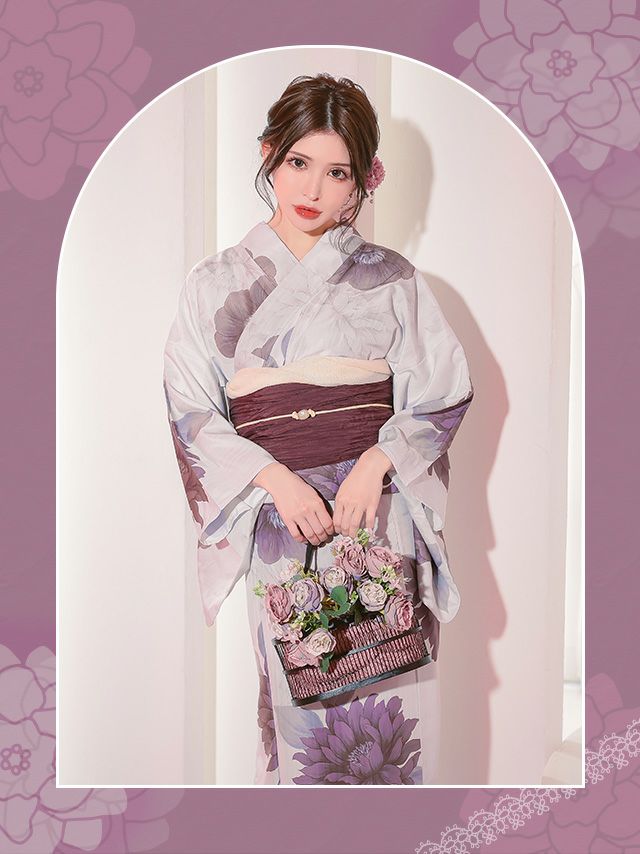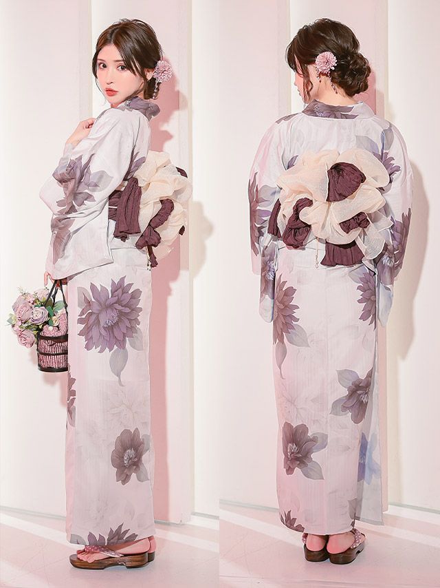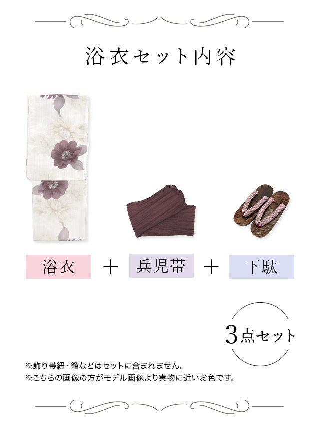 妖艶 生成り地×糸菊 ゆかた3点セット内容