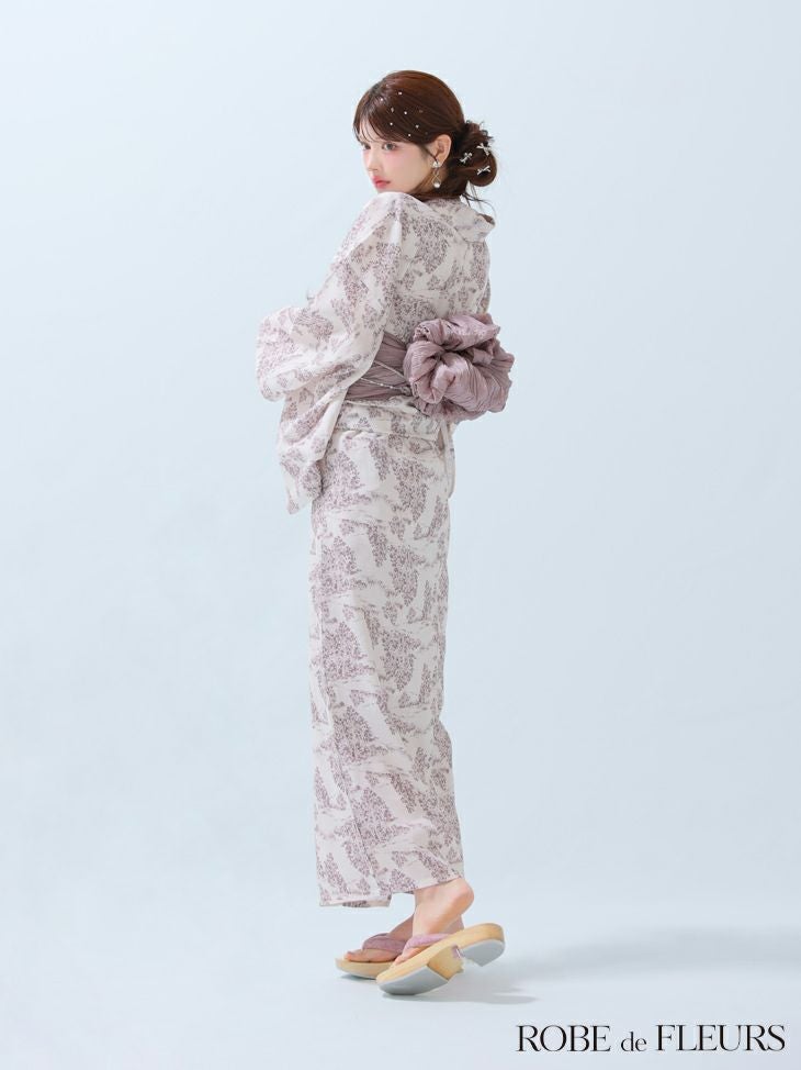 多くの浴衣は「浴衣+帯」または「浴衣+帯+下駄」の3点セットになっています。商品ごとにセット内容が異なるため、各ページの詳細をご確認ください。