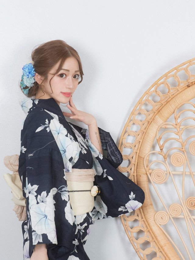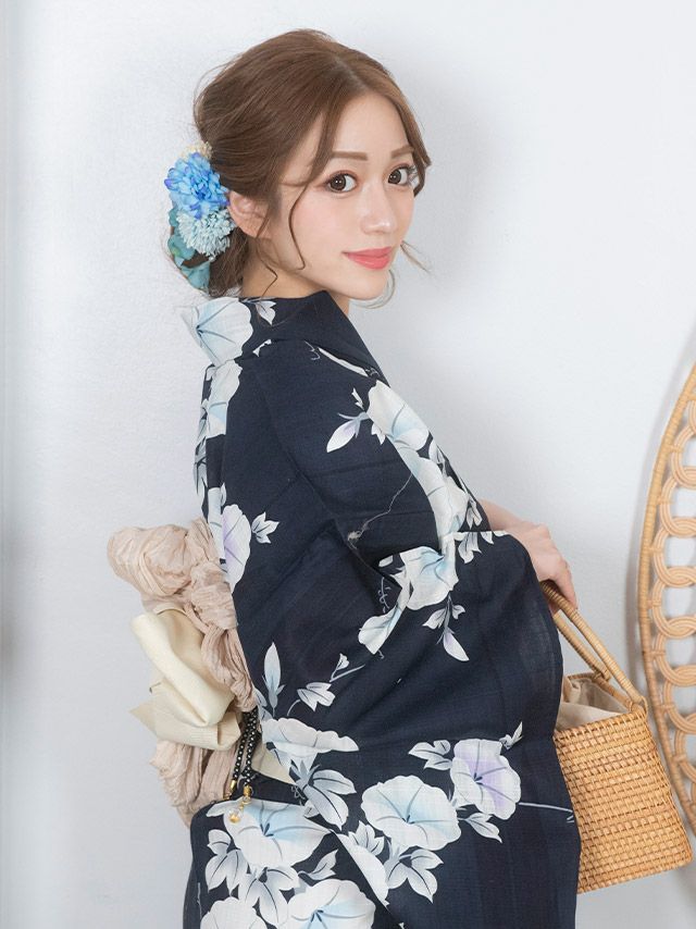 紺地に華やか朝顔ゆかた3点セットのイメージ画像3
