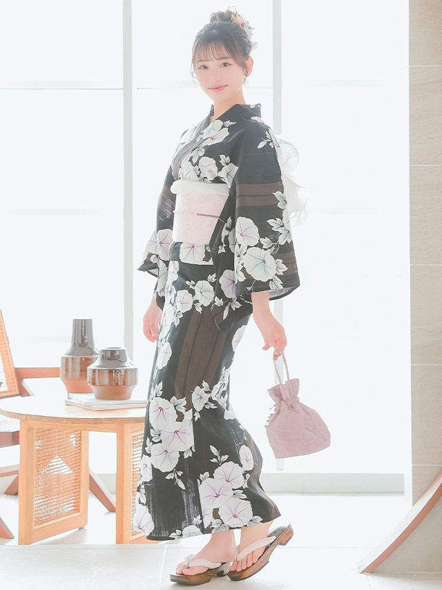 黒地にマルチストライプ×朝顔ゆかた3点セットのイメージ画像3