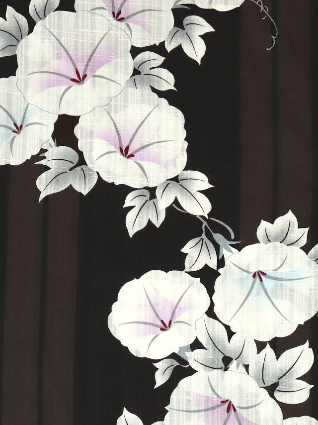 黒地にマルチストライプ×朝顔ゆかた3点セットの柄の詳細アップ