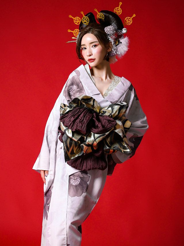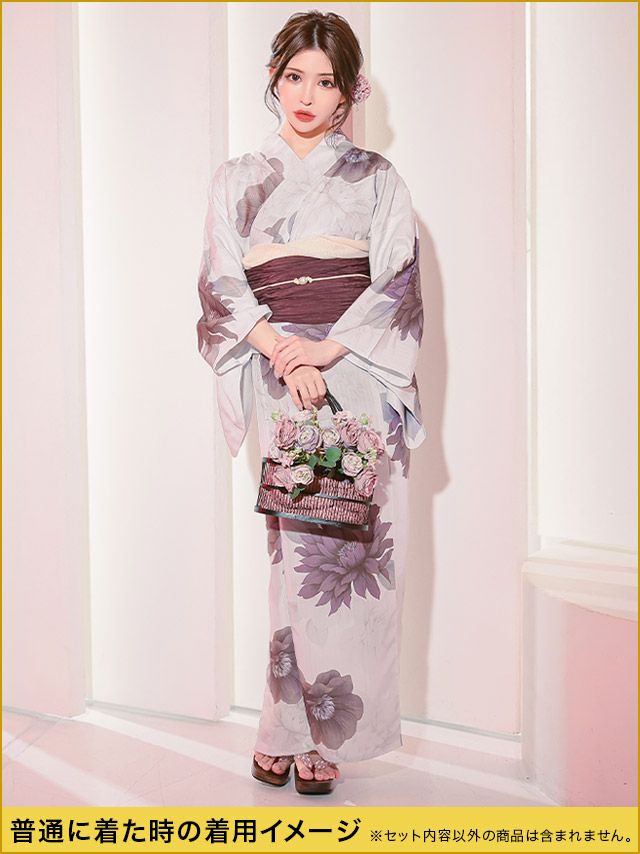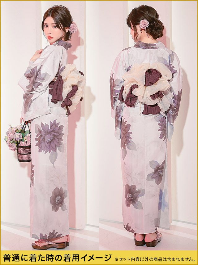 花魁 白地×大輪牡丹2way おいらん浴衣5点セットのイメージ画像3