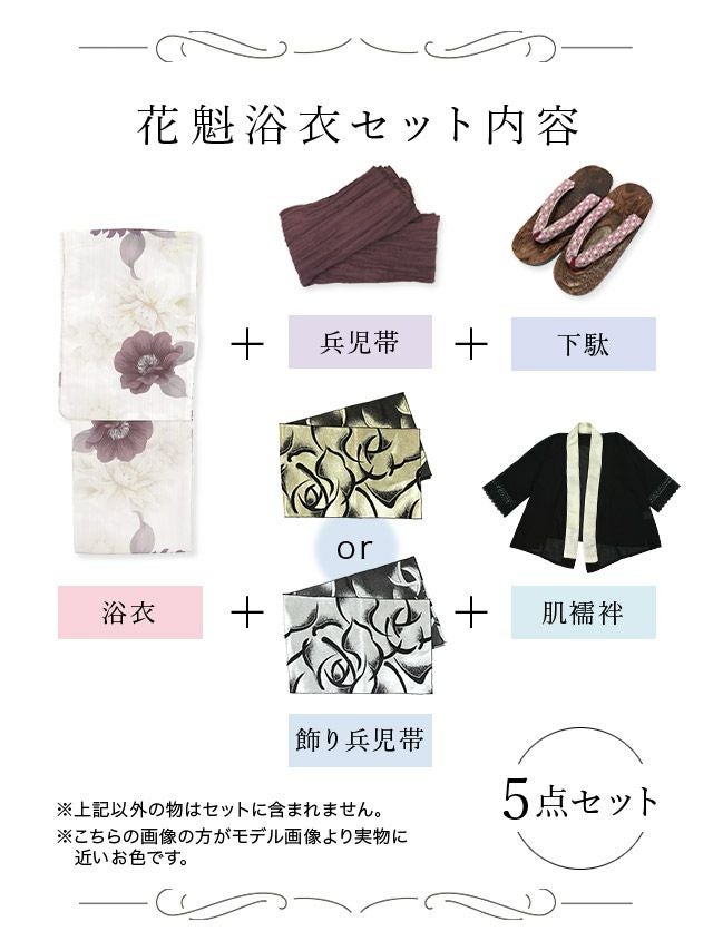 花魁 白地×大輪牡丹2way おいらん浴衣5点セットのセット内容