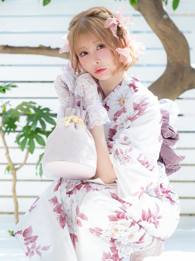 SWEET 白地 牡丹 ゆかた3点セットのイメージ画像5