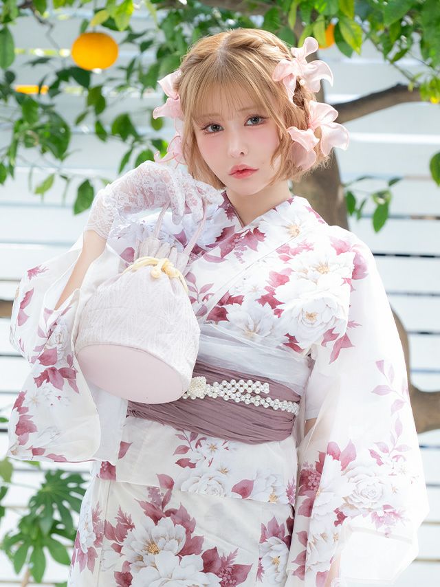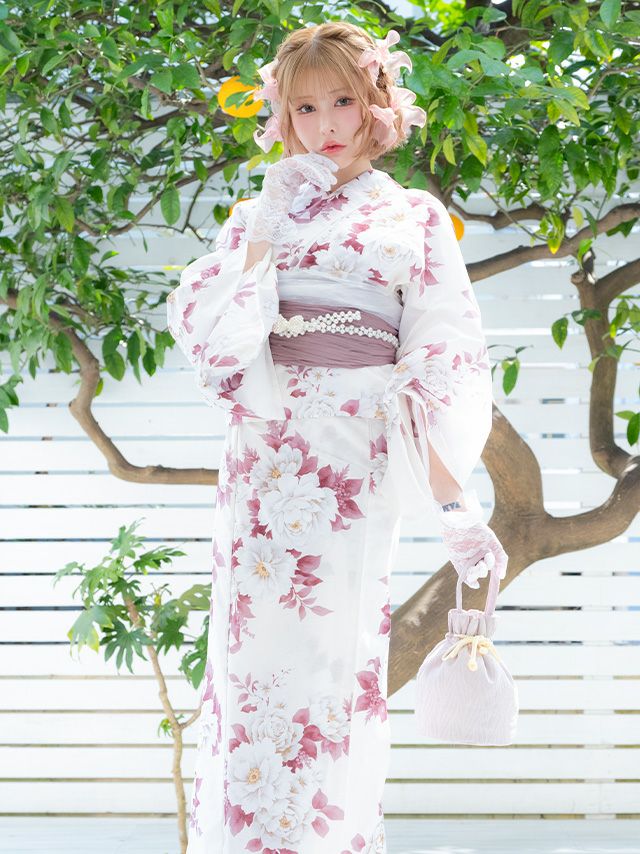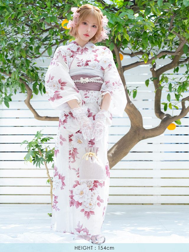 SWEET 白地 牡丹 ゆかた3点セットの全身フロント画像