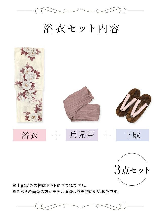 SWEET 白地 牡丹 ゆかた3点セットのセット内容