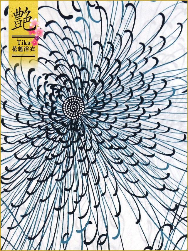 花魁 白地×大輪乱菊 2way おいらん浴衣5点セットの生地アップ画像