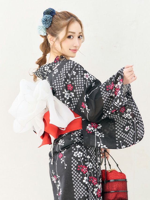 レトロ 黒地×しだれ桜セットの全身フロント画像