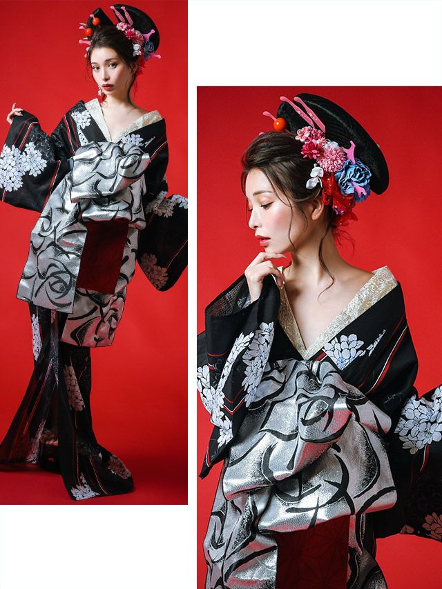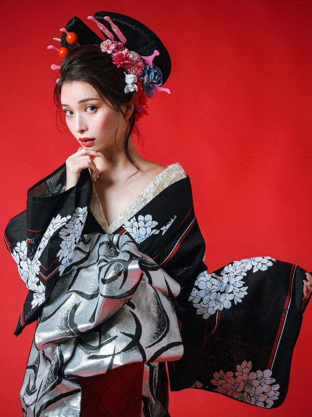 帯にはエレガント感UPする赤色がアクセントに引き締め、