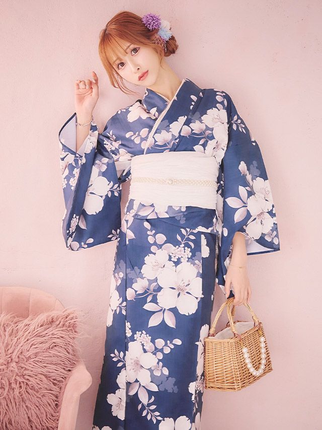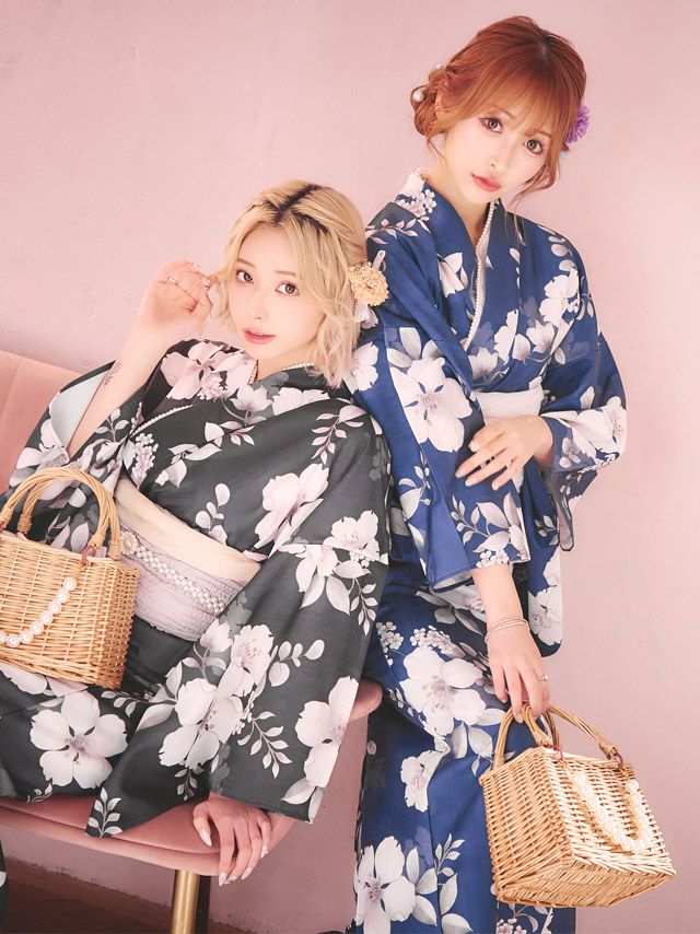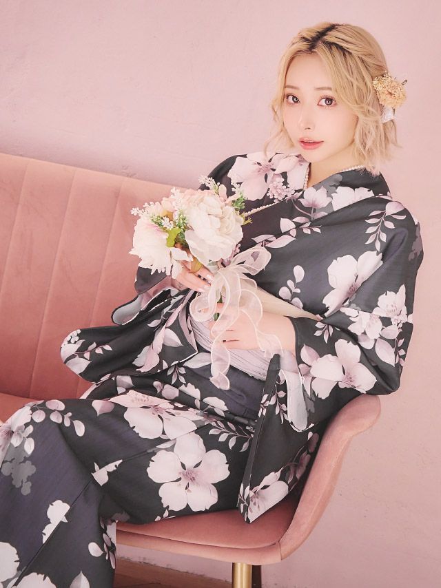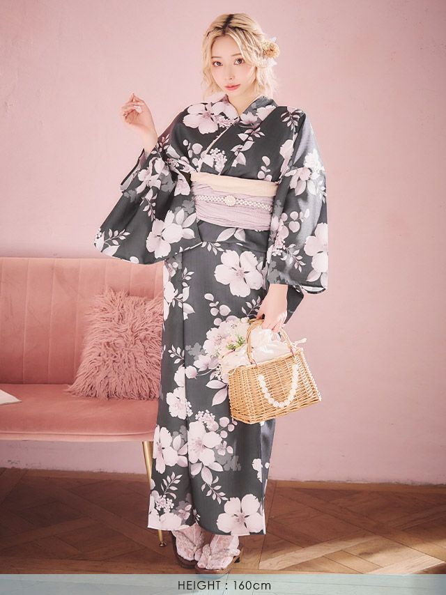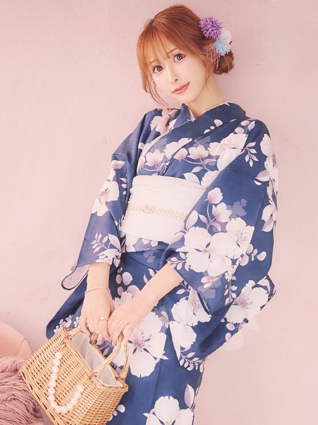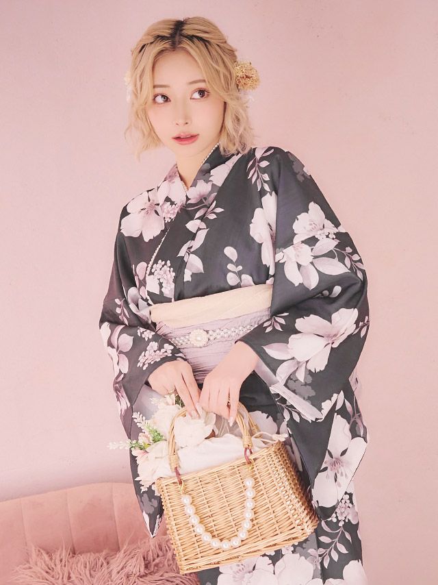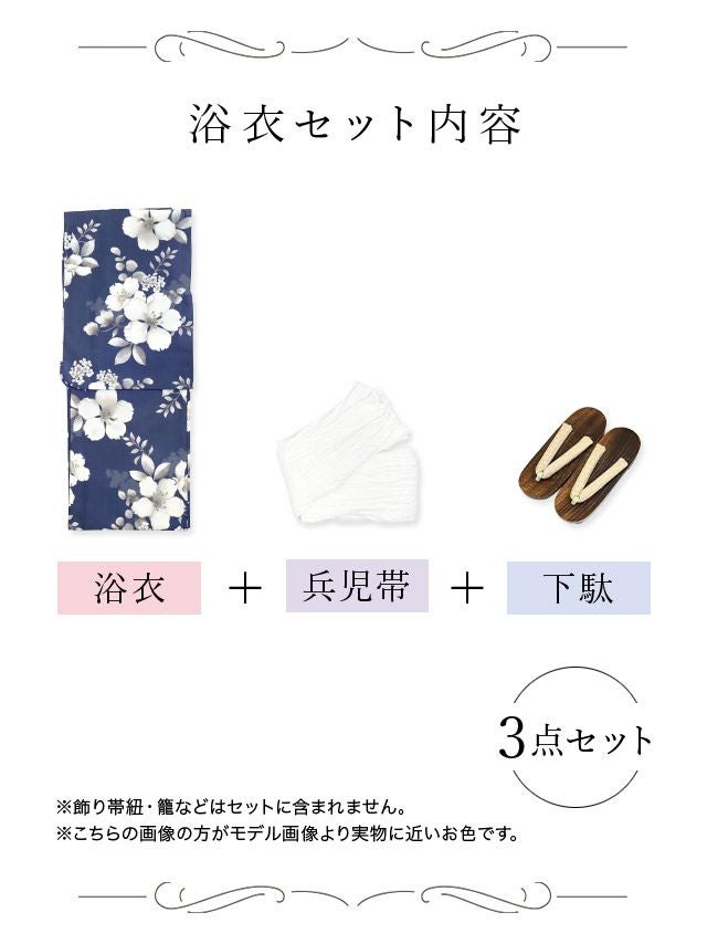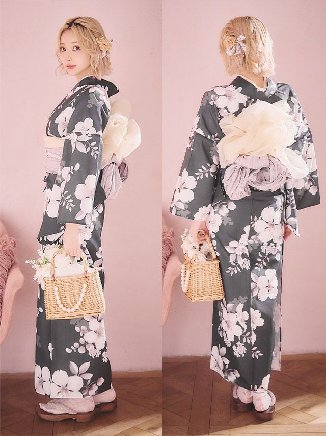 ブルー/浦西ひかる着用 ニュアンス桜 ゆかた3点セットのセット内容 ブラック/PyunA.着用 ニュアンス桜 ゆかた3点セットのセット内容