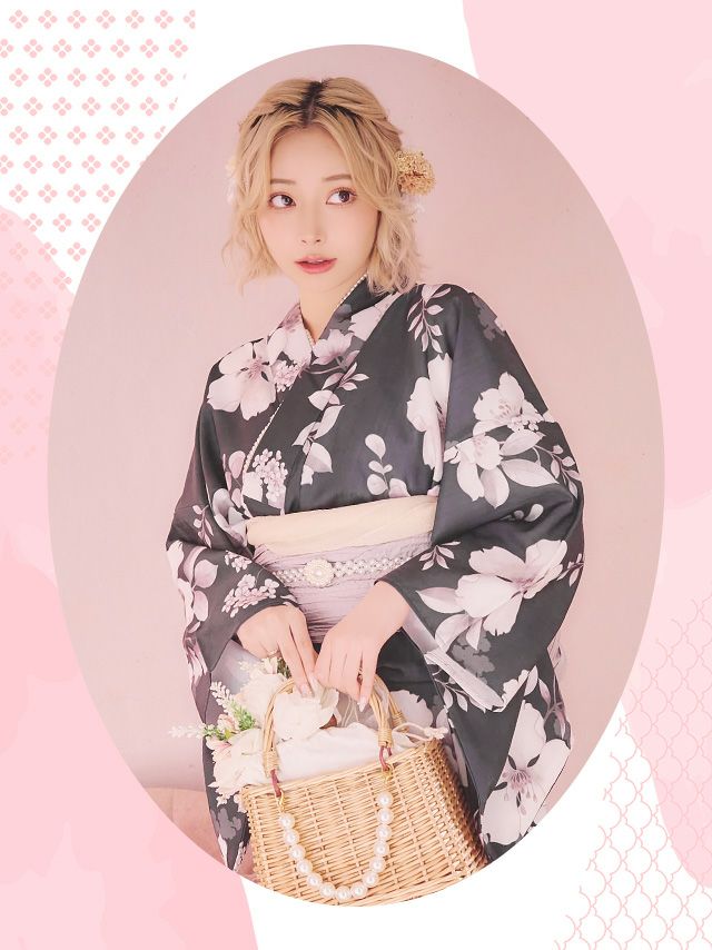 黒地×華やかニュアンス桜 ゆかた3点セットのセット内容