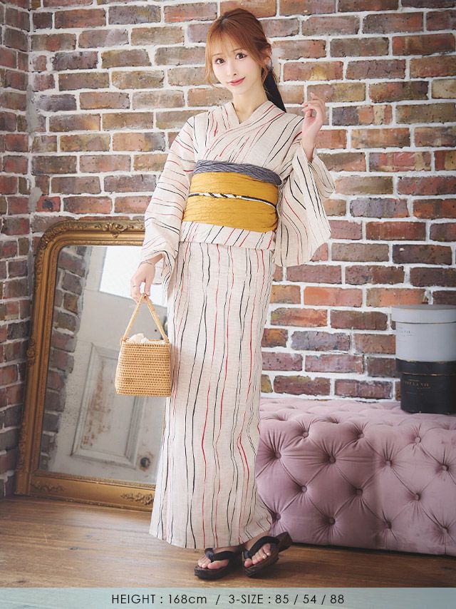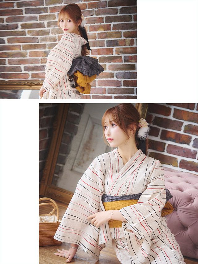 生成地×2色よろけ縞 ゆかた3点セットのイメージ画像1