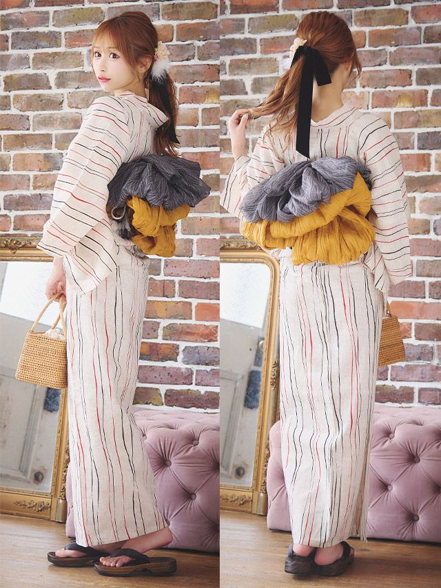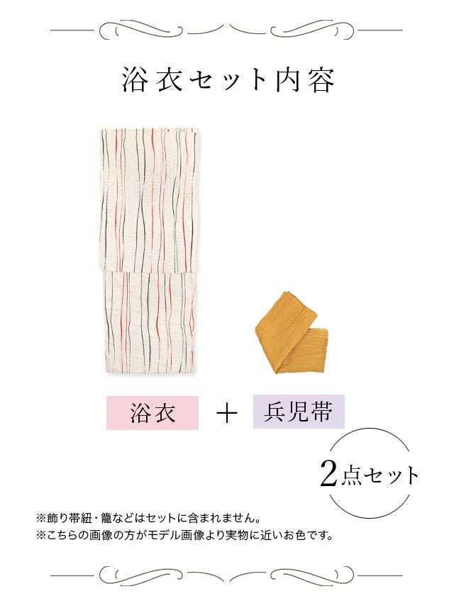 生成地×2色よろけ縞 ゆかた3点セットのセット内容