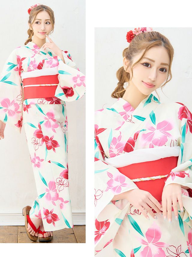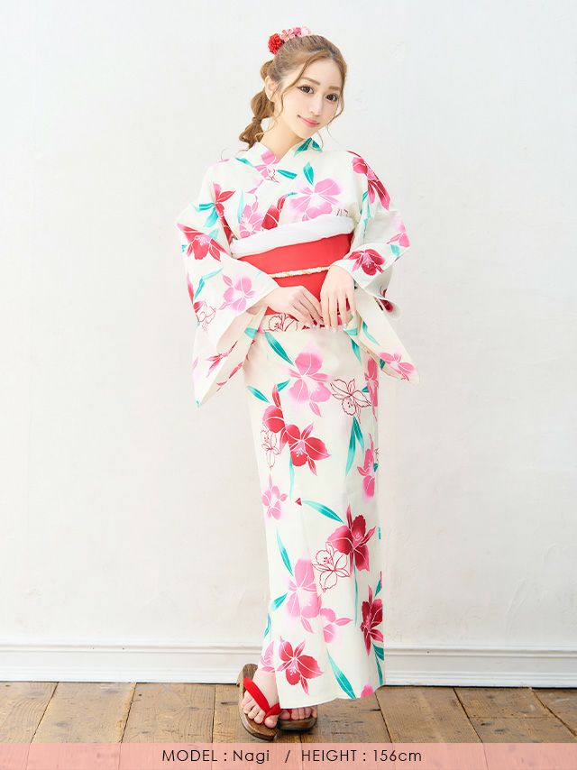 SWEET 白地×カラフル百合 ゆかた3点セット内容