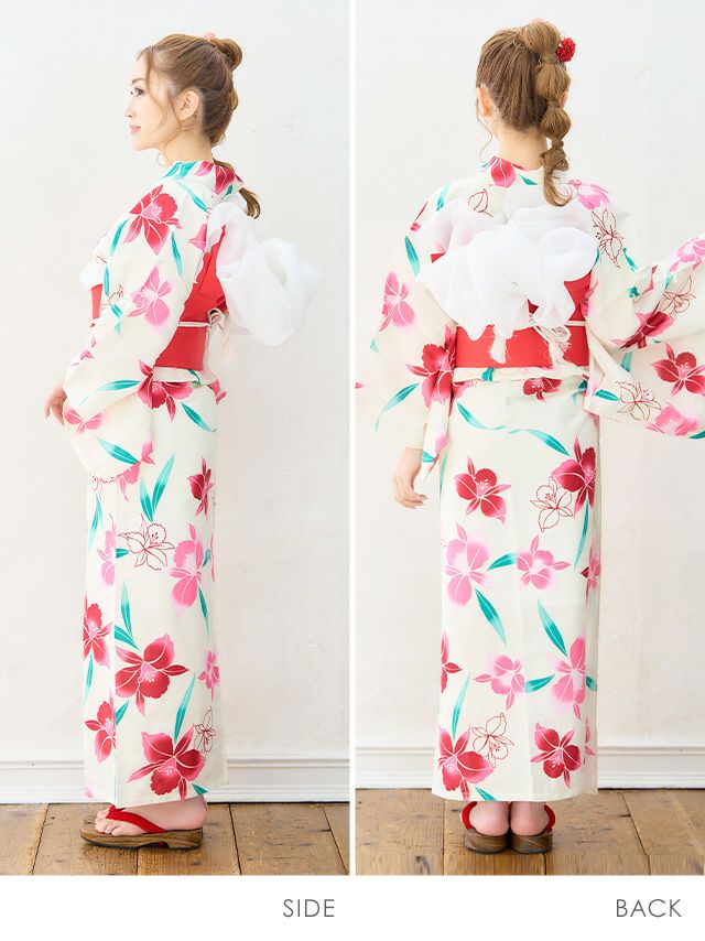 SWEET 白地×カラフル百合 ゆかた3点セットの全身サイドバック画像