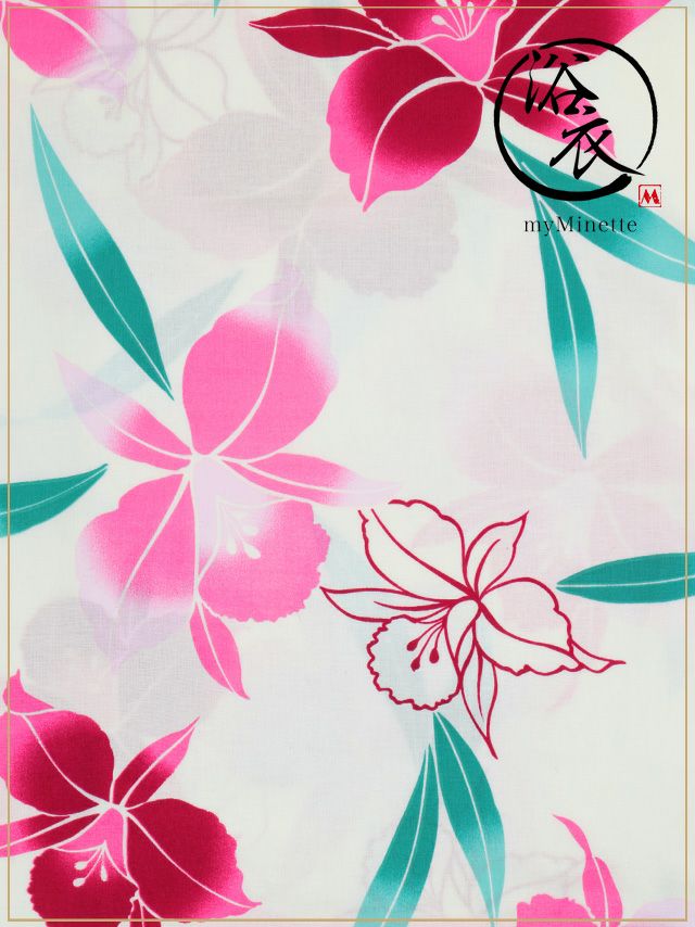SWEET 白地×カラフル百合 ゆかた3点セットの生地アップ画像
