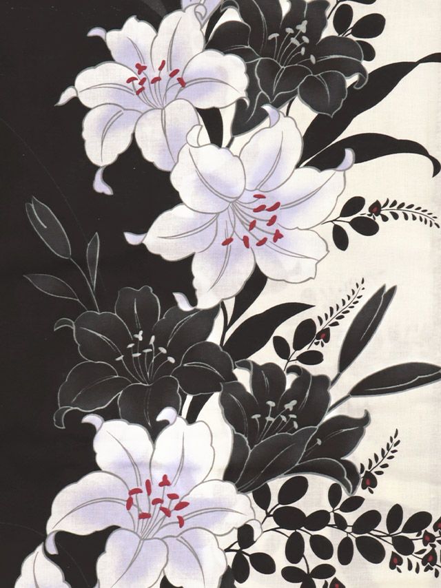 粋 モノトーン萩百合ゆかた3点セットの生地詳細画像