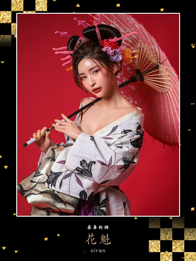 花魁 浴衣・兵児帯・飾り兵児帯・下駄・肌襦袢 5点セット☆
