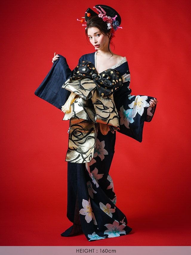 花魁 濃紺×菖蒲の花 2way おいらん浴衣5点セット