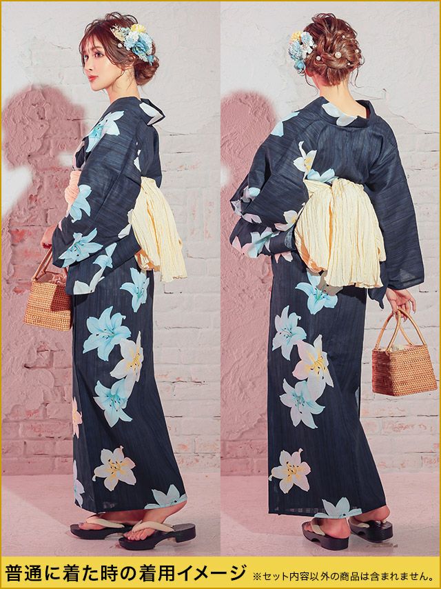 花魁 片身変わりグラデーション百合2way おいらん浴衣5点セットのセット内容
