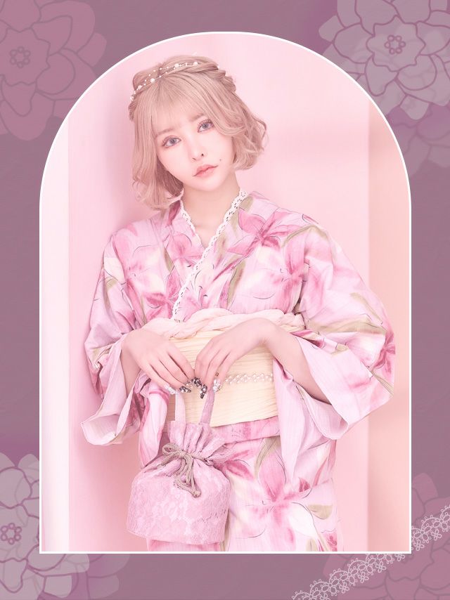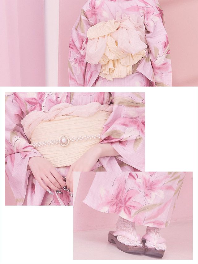 スウィート ピンク地に水彩百合の花 ゆかた3点セットのイメージ画像4