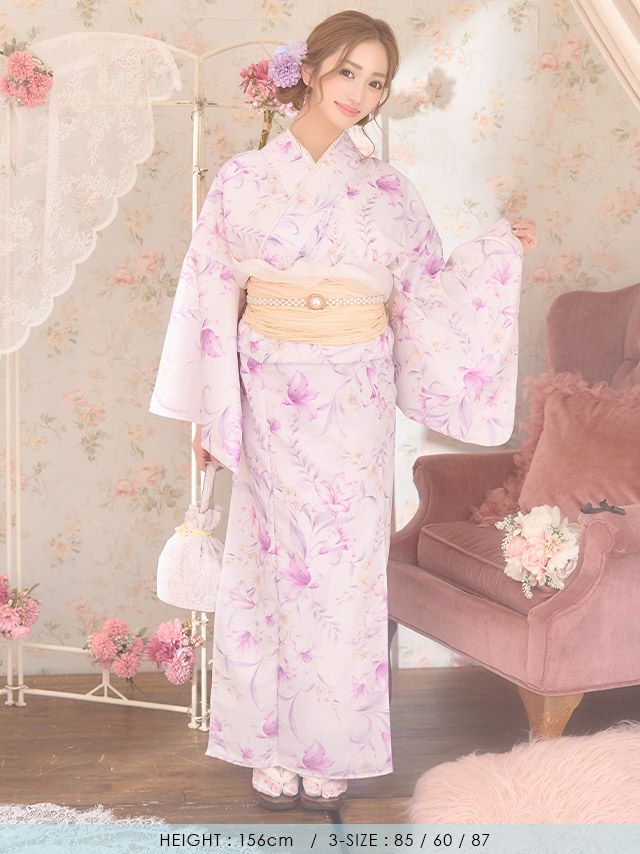 着るだけで女子力上がる♪ [浴衣] SWEET ニュアンスピンクリリー 3点セット (ゆかた・兵児帯・下駄)