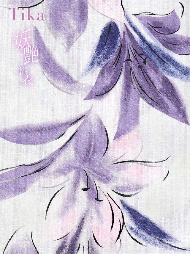 妖艶 白地×水彩紫の百合の花 ゆかた3点セットのイメージ画像2