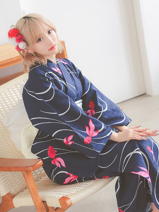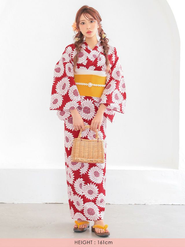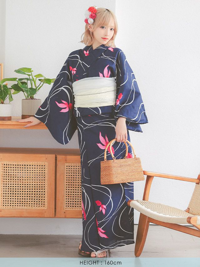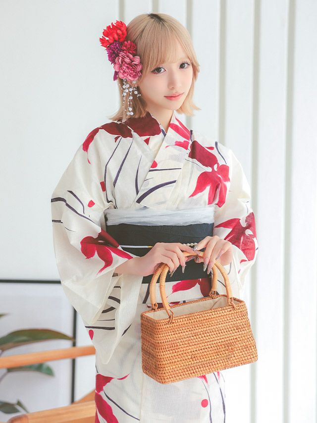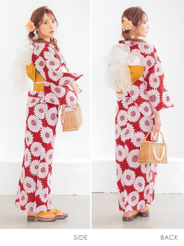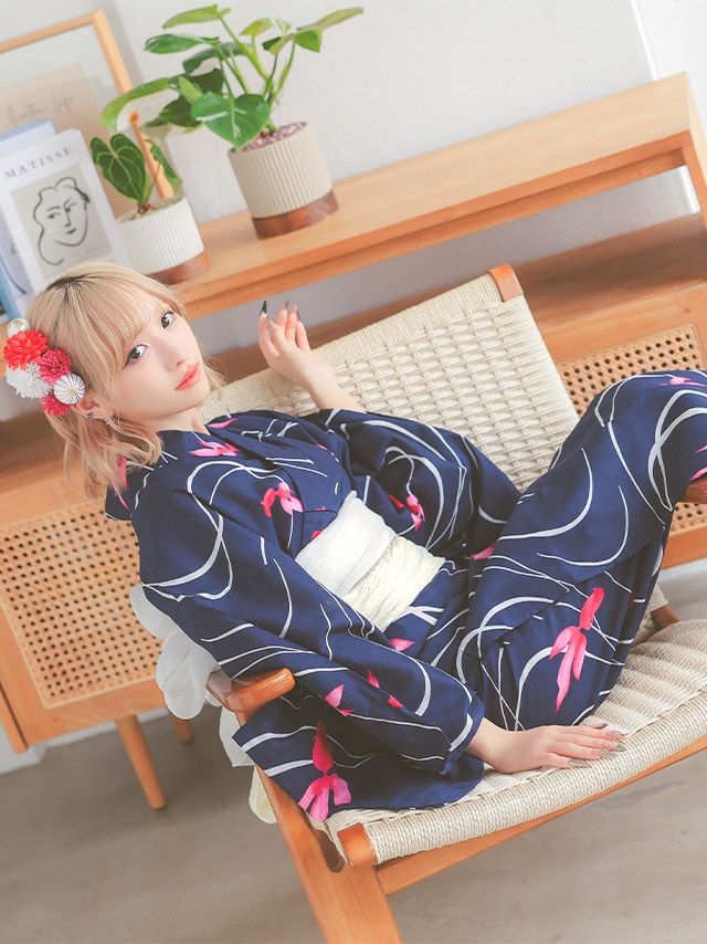 多くの浴衣は「浴衣+帯」または「浴衣+帯+下駄」の3点セットになっています。商品ごとにセット内容が異なるため、各ページの詳細をご確認ください。