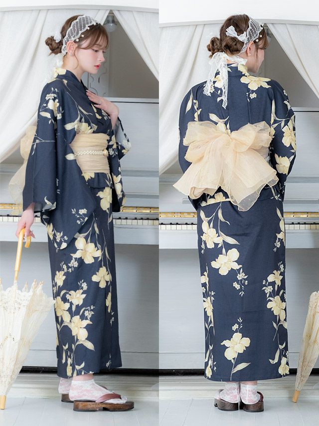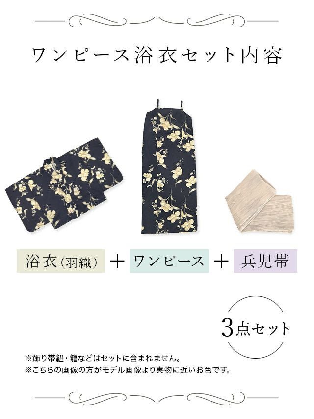 ワンピース 紺地 アンティーク 百合 ゆかた3点セットのセット内容