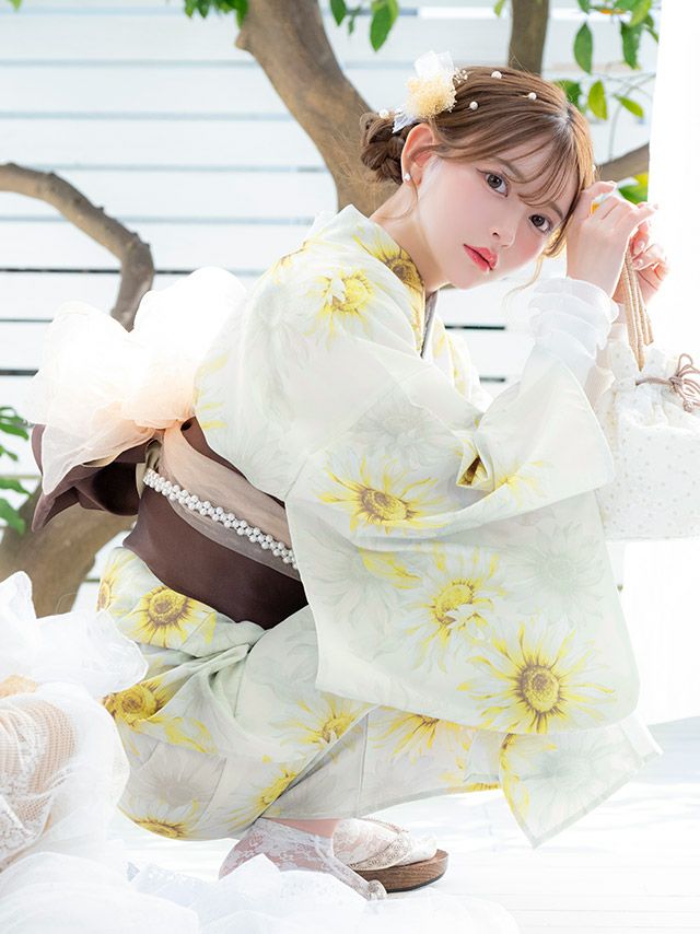 SWEET  白地 水彩 向日葵 ゆかた 3点セットのイメージ画像4