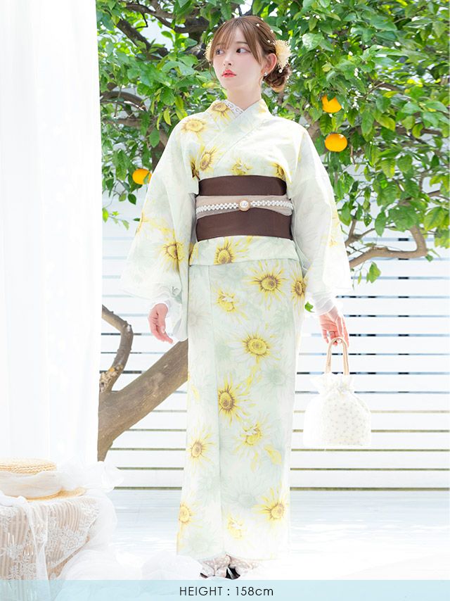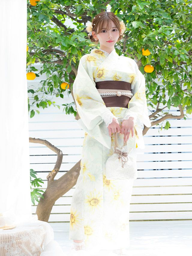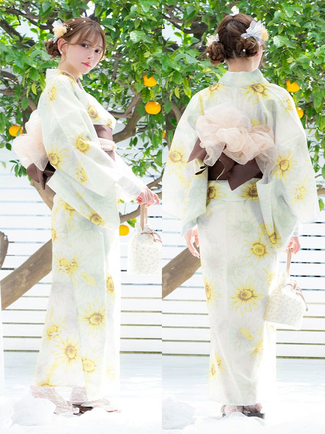 SWEET  白地 水彩 向日葵 ゆかた 3点セットのセット内容