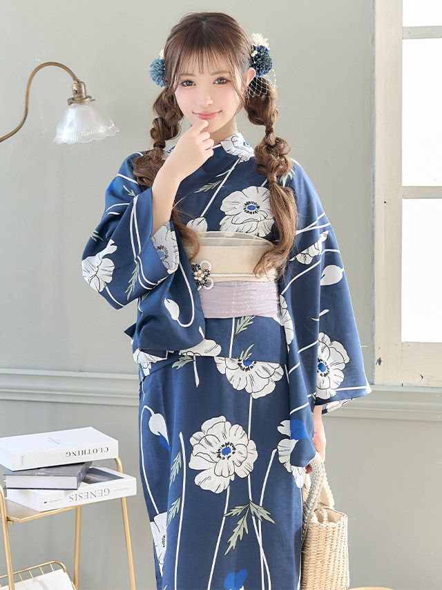 線画ホワイトポピー  ゆかた3点セットのイメージ画像1