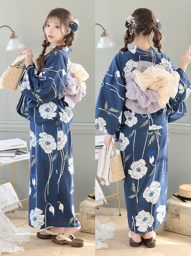 線画ホワイトポピー  ゆかた3点セットのセット内容