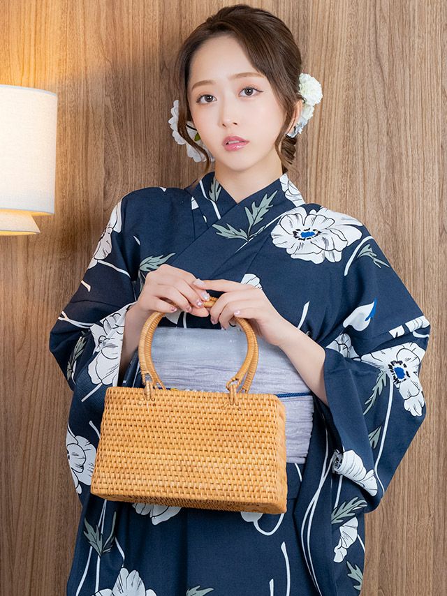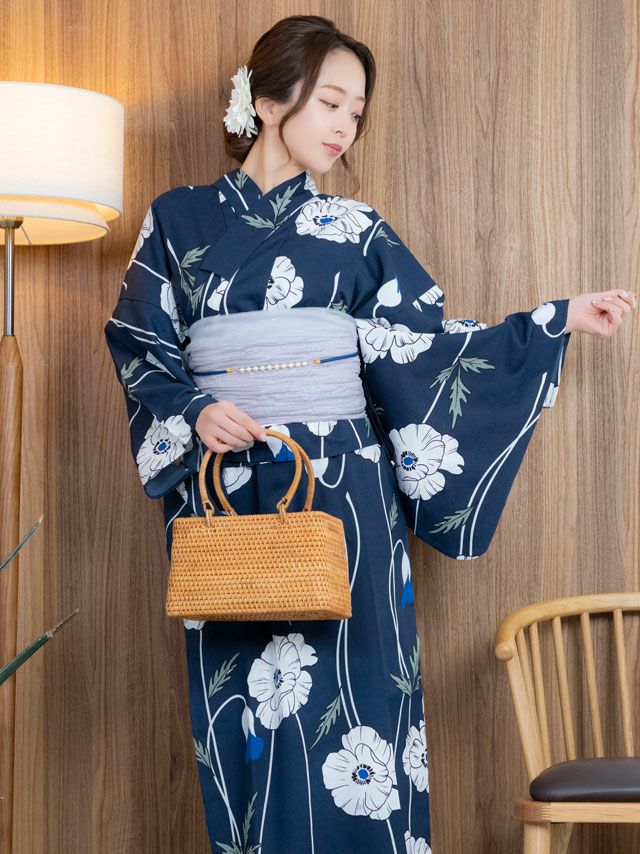 ワンピース 紺地 線画 ポピー   ゆかた3点セットのセット内容