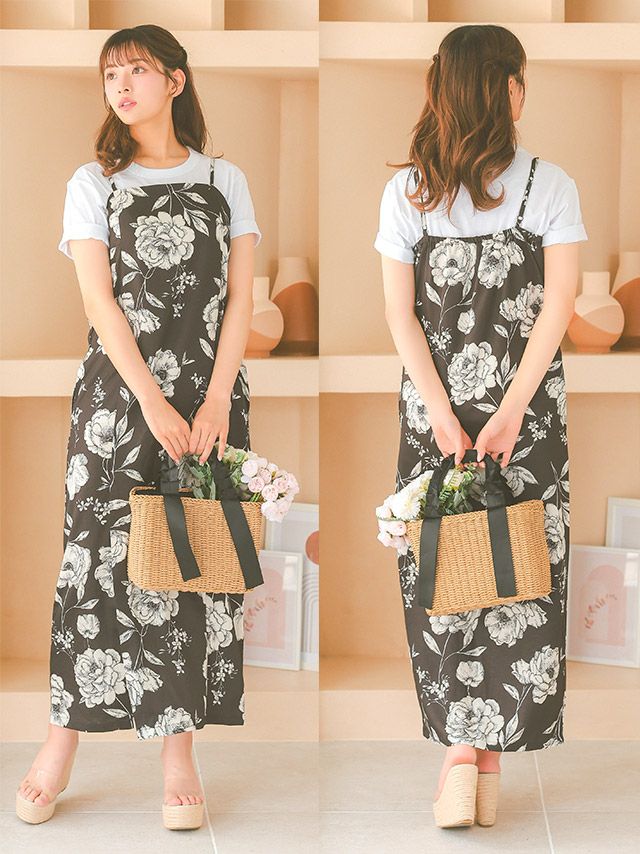 黒地 ヴィンテージフラワー モノトーン簡単 一人で着れる 2025 SWEETシリーズ 3点セットの全身フロント画像