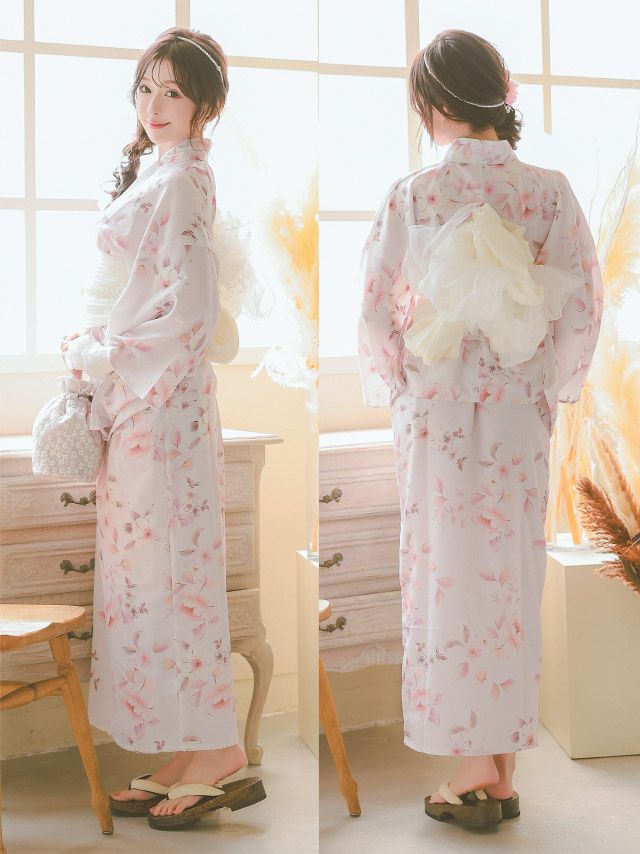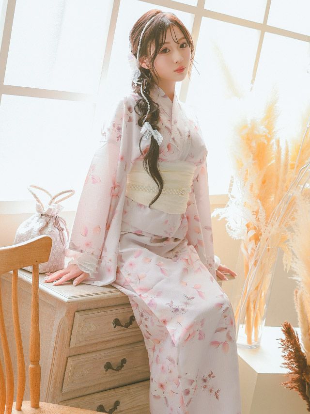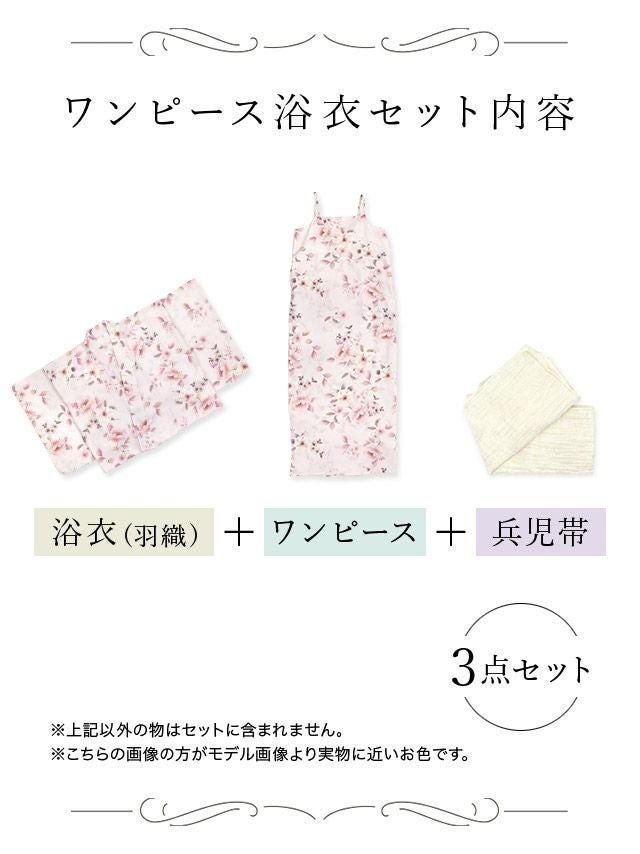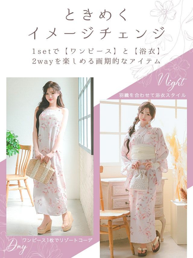 浴衣とワンピースの2Wayを楽しめる♪ [ワンピース浴衣] パウダーピンク ニュアンスフラワー 簡単 一人で着れる 2025 SWEETシリーズ 3点セット 雨宮由乙花着用 (ゆかた羽織・ワンピース・兵児帯)