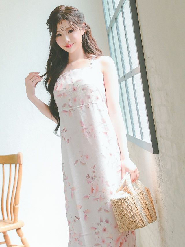 4. [ワンピース浴衣] パウダーピンク ニュアンスフラワー 簡単 一人で着れる 2025 SWEETシリーズ 3点セット 雨宮由乙花着用 (ゆかた羽織・ワンピース・兵児帯)