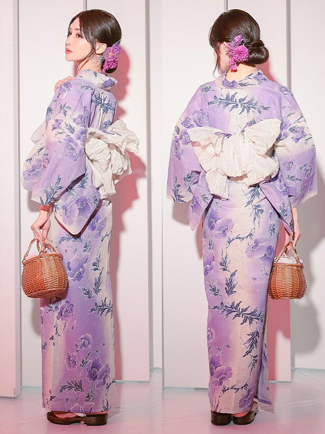 妖艶 綿麻グラデーション×ポピー ゆかた3点セット内容