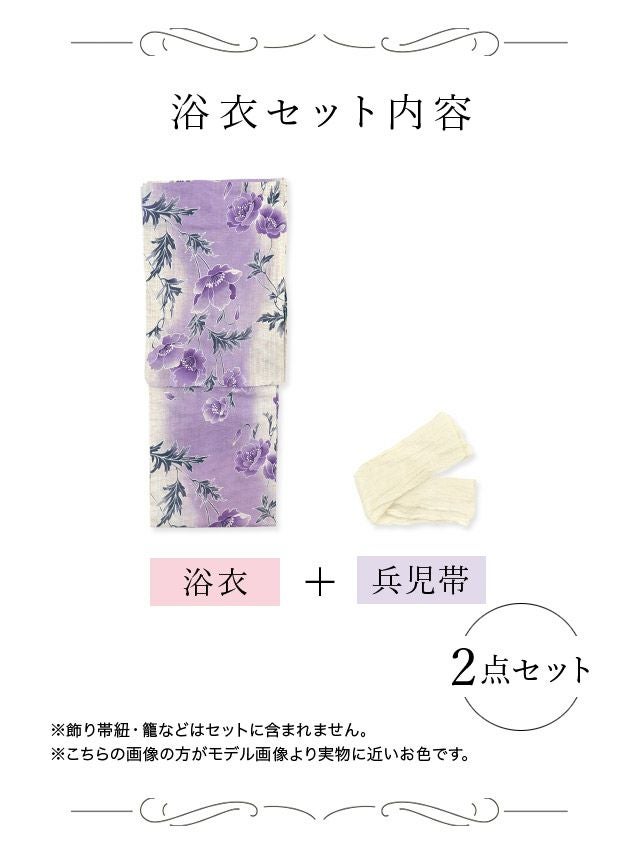 妖艶 綿麻グラデーション×ポピー ゆかた3点セットのセット内容