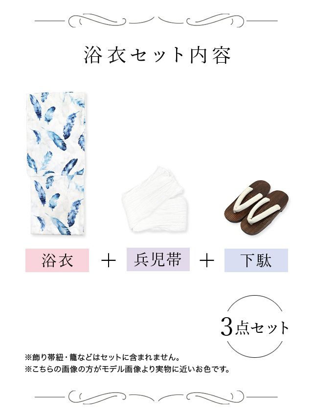白地×エアリーブルーフェザー ゆかた3点セットのセット内容