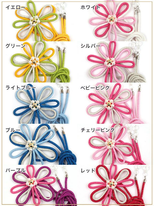 5. [浴衣小物] パール×クリスタルビーズ花結び飾り帯紐 10色展開 (ブルー/パープル/チェリーピンク/レッド/イエロー/ベビーピンク/グリーン/ライトブルー/シルバー/ホワイト)